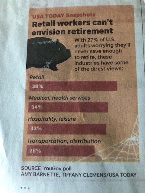 We know that Social Security was never meant to be the sole source of retirement income especially when the retired workers average a monthly social security benefit of $1543 as of January 2021 ~ roughly the equivalent of a minimum-wage job. So much for a life of travel and leisure so many retirees desire. Unfortunately, many fall into this category, as shown in the above illustration published in U.S. News.